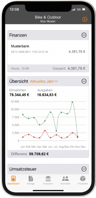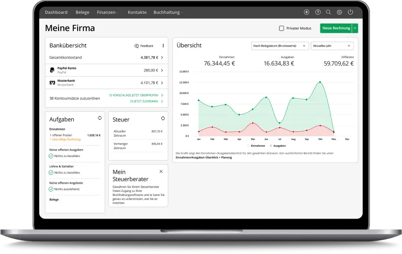Lexware Office zeigt Dir alle Einnahmen + Ausgaben auf einen